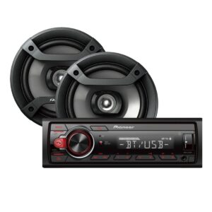 El Kit Pioneer MXT-S216BT fue diseñado para brindar una experiencia musical segura e inmersiva que te acompañara siempre mientras conduces. Disfruta de la conectividad inalámbrica que te brinda el Radio Pioneer MVH-S215BT, que en combinación con los Parlantes Pioneer TS-F1634R te hará sumergirte en un sonido de calidad, sin distorsiones.