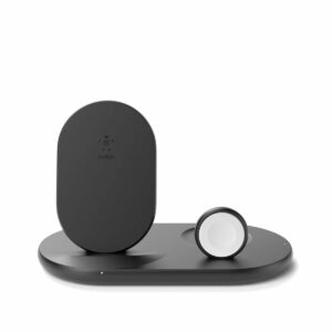 Carga tu iPhone, Apple Watch y AirPods más rápido y a la vez con esta base Belkin de carga tres en uno. Con una plataforma de carga inalámbrica de 7.5W para tu iPhone, un módulo de carga magnético para tu Apple Watch y una plataforma de 5W para cargar tus AirPods. Esta elegante base de carga es perfecta para tu mesa de noche u oficina de casa.