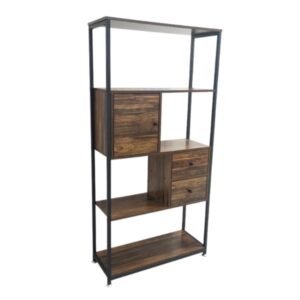 El librero Tokoa OL-2134 combina modernidad y rusticidad en un mueble de alta calidad. Fabricado en melamina y PVC con un acabado de madera rústica, ofrece cinco estantes, gavetas incorporadas y una estructura de metal resistente en un atractivo color café/negro. Ideal para decorar y organizar espacios en el hogar.