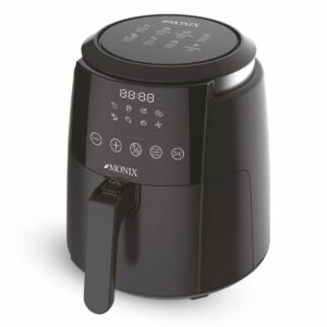 Monix te ofrece está potente Freidora de Aire de 4 litros, que te permite cocinar tus alimentos sin necesidad de sumergirlos en aceite, mediante Aire rápido DualCyclon, que calienta de manera potente y pareja, brindándote un resultado dorado y crujiente parecido al de las comidas cocidas en aceite pero mucho más saludable.