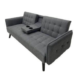 El Sofá Cama Tokoa con Portavasos es un mueble versátil y funcional que combina comodidad y practicidad en un solo diseño. Confeccionado en tela de lino y respaldo reclinable, ofrece un asiento cómodo y ajustable para relajarte. Su estructura de madera garantiza durabilidad y calidad, mientras que el portavasos añade un toque adicional de conveniencia.