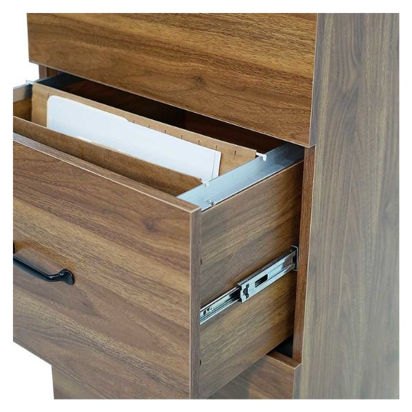Además de su funcionalidad y seguridad, el Archivero Tokoa OM-2177 también se caracteriza por su elegante diseño. Cada gaveta está equipada con una agarradera de metal negro que no solo facilita la apertura y cierre de las gavetas, sino que también añade un toque de estilo y sofisticación al archivero. La combinación del color madera y el metal negro crea un contraste atractivo que complementará la estética de cualquier espacio.