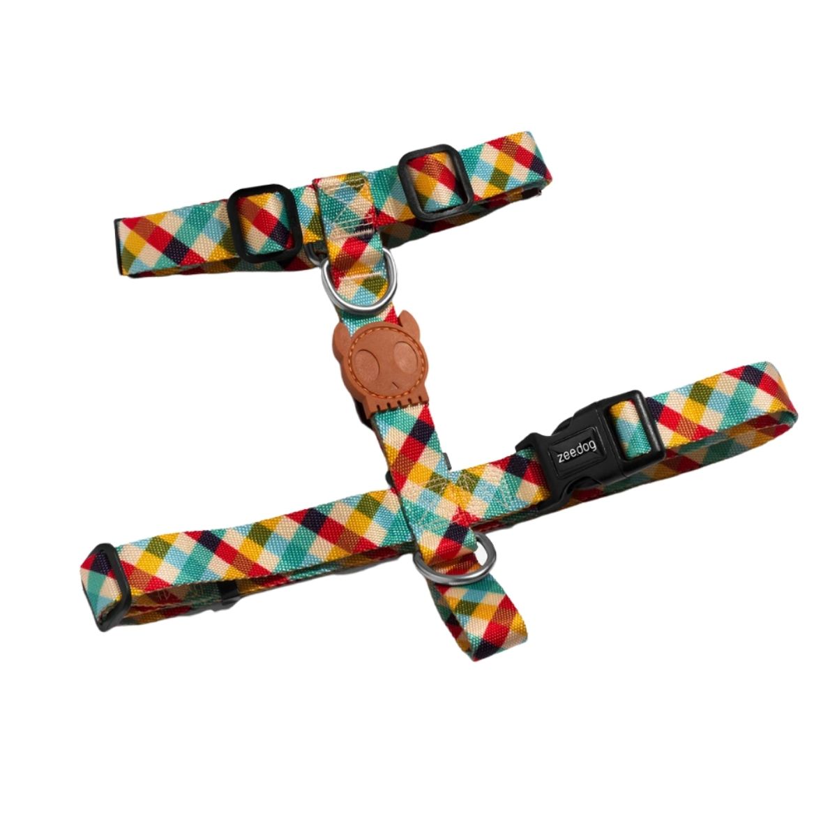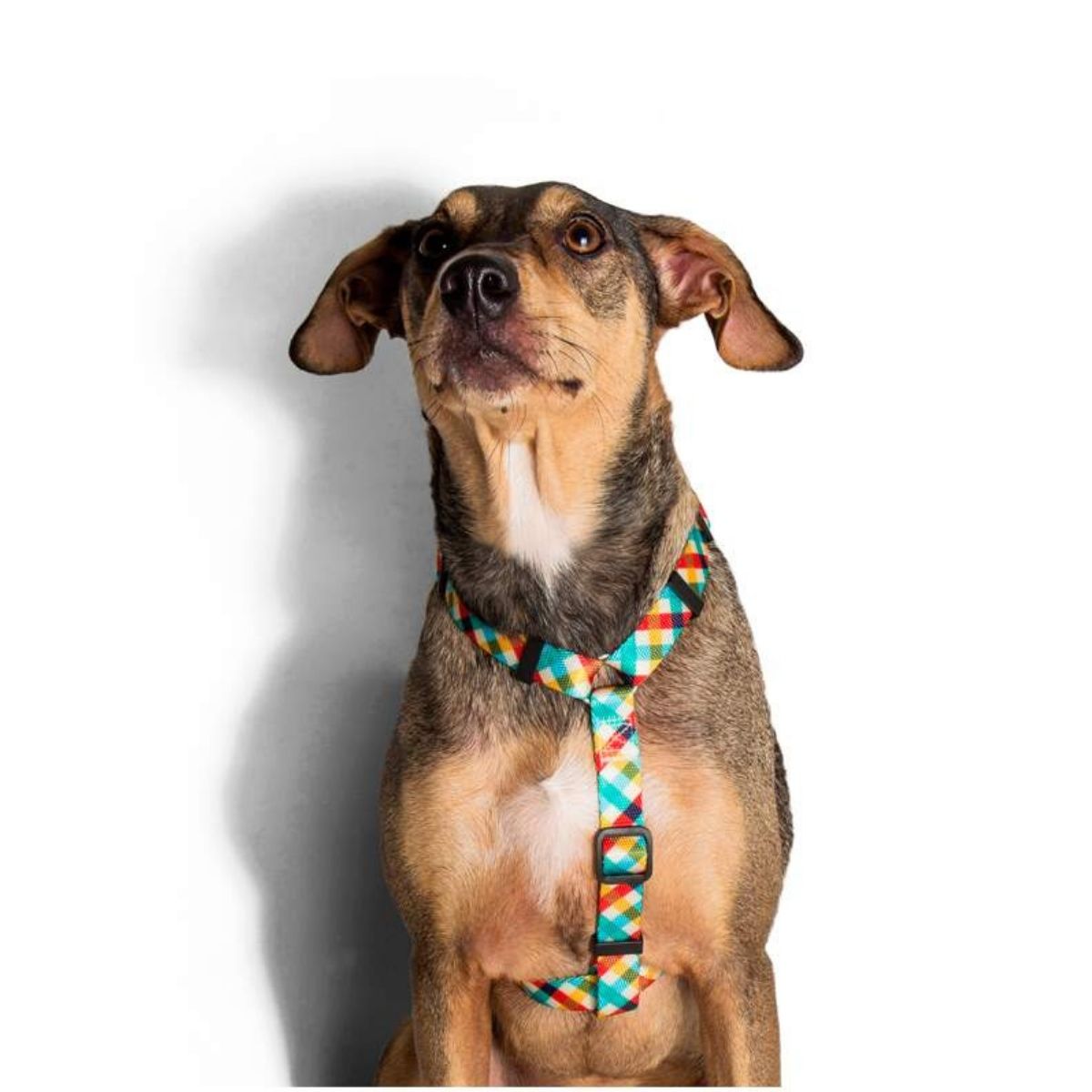 Fabricado en poliéster suave y resistente y un diseño de colores brillantes, que lo hace único. Es un modelo versátil con dos anillos en D en la parte posterior, disponibles para sujetar la correa, solo eligí cuál se siente más cómodo. La hebilla está construida con un sistema de bloqueo de 4 puntos para mayor seguridad.