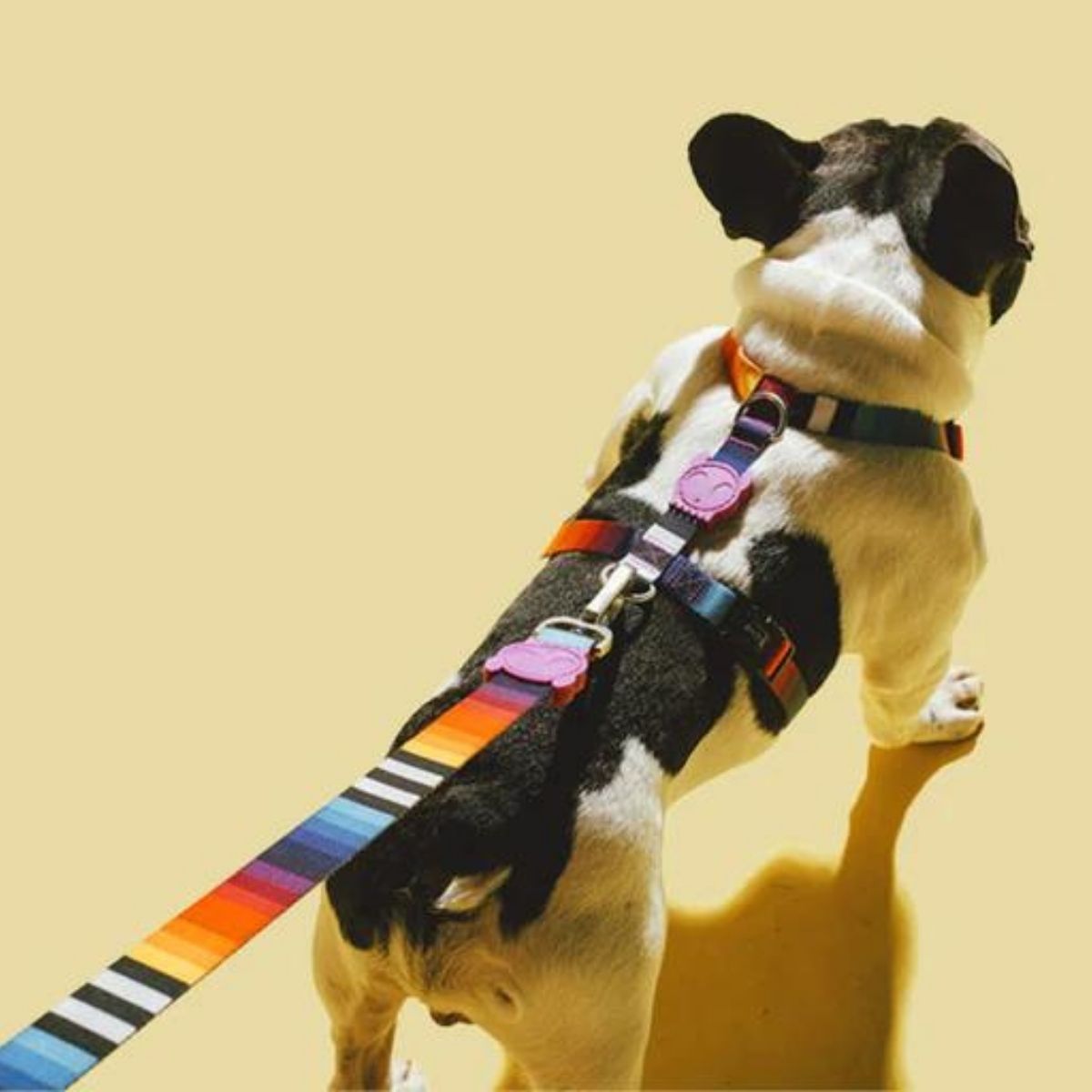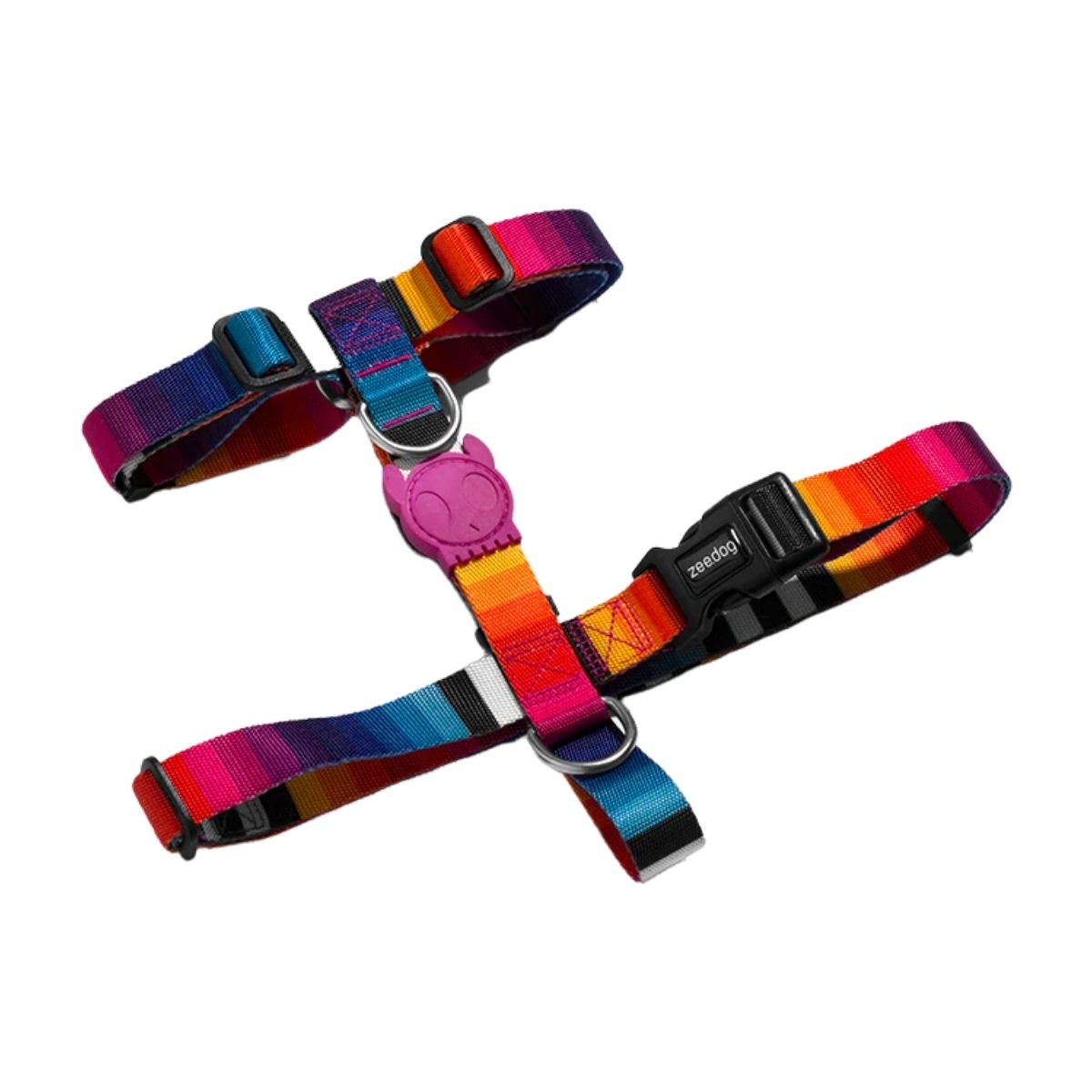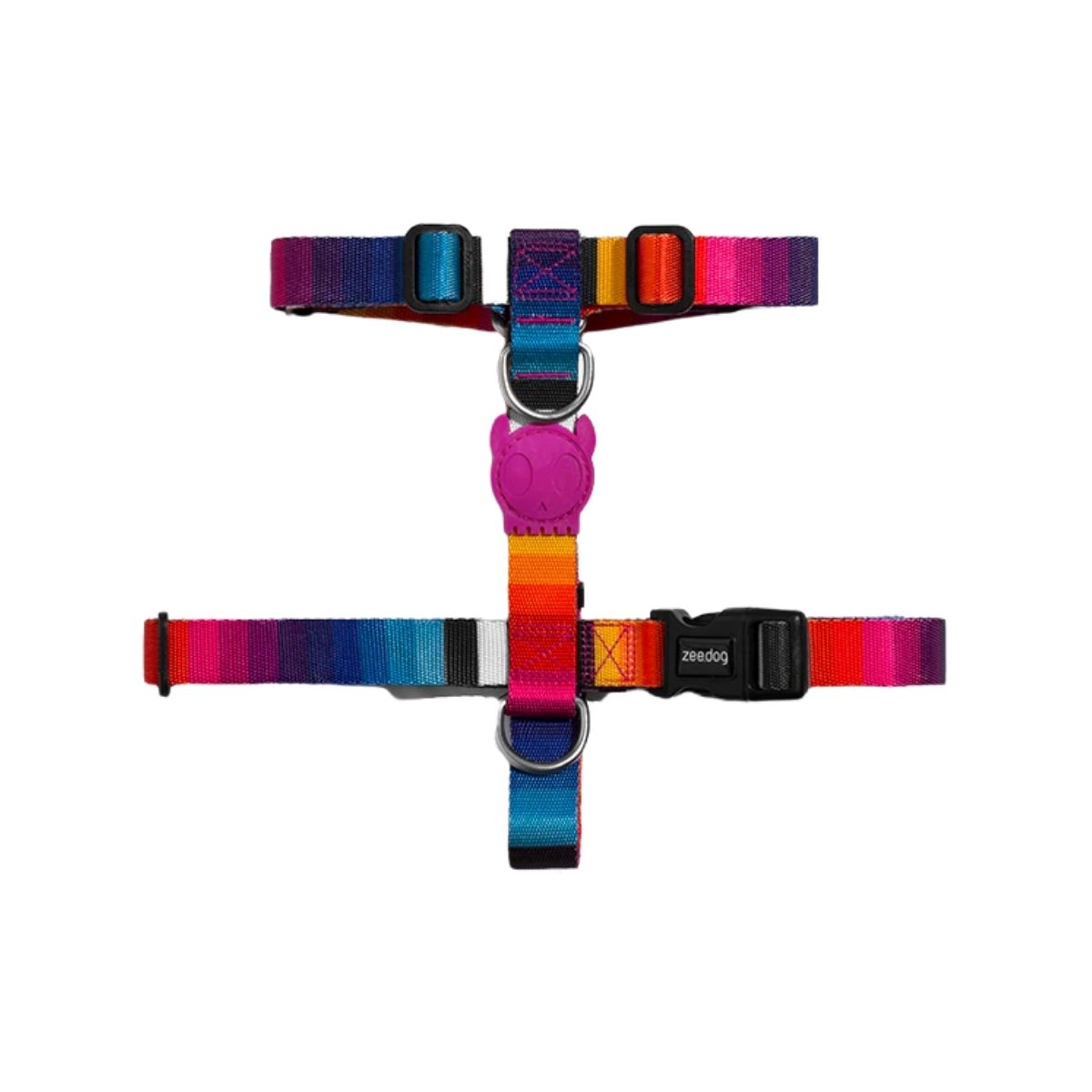 Fabricado en poliéster suave y resistente y un diseño de colores brillantes, que lo hace único. Es un modelo versátil con dos anillos en D en la parte posterior, disponibles para sujetar la correa, solo eligí cuál se siente más cómodo. La hebilla está construida con un sistema de bloqueo de 4 puntos para mayor seguridad.