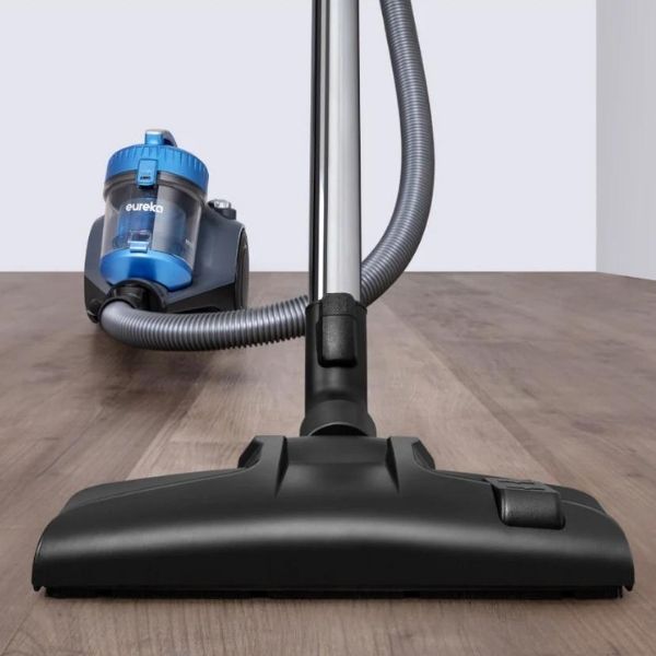La aspiradora Midea Eureka Canister de 2.5L, modelo MC15K2B-CA, destaca por su innovación y eficacia en la limpieza de múltiples superficies. Su atractivo diseño en color negro con detalles en azul no solo le proporciona un aspecto moderno, sino que también la hace fácilmente identificable en cualquier rincón del hogar. Esta aspiradora multi-surface es, sin duda, un aliado ideal para mantener los pisos duros, alfombras y muebles impecables.
