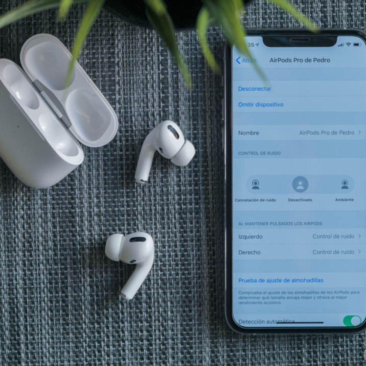 - En la caja: Airpods Pro, Estuche con MagSafe, Almohadillas de silicón (cuatro tamaños) Cable de Lightning a USB-C, Documentación.