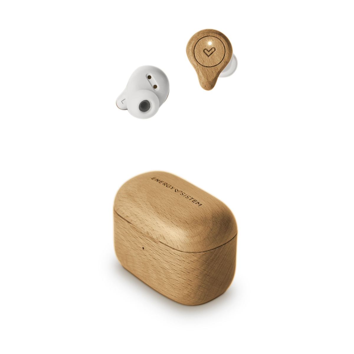 Los audífonos TWS de Energy Sistem, modelo Eco True, fabricados con madera de Haya sostenible y con carga inalámbrica. Disfruta de un diseño compacto y un sonido equilibrado, agudos nítidos y graves potentes, cuenta con micrófono incorporado y conector de carga USB tipo C.