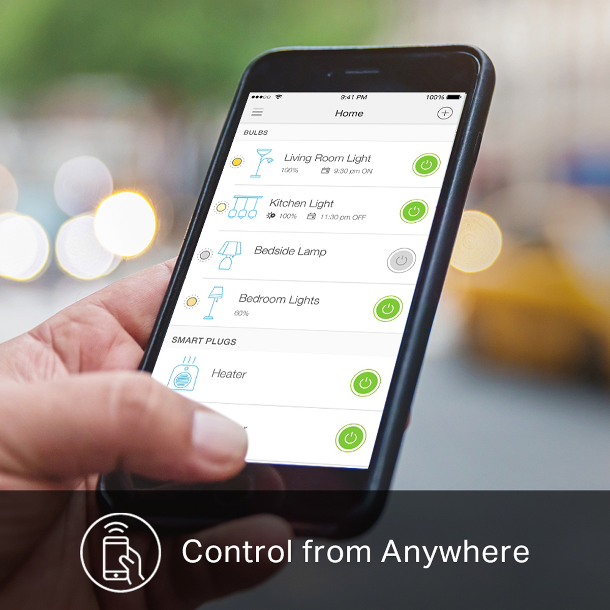 Tiene funcionalidades para control remoto y de voz, también se puede conectar con Alexa o Google Assistant donde los asistentes de voz están en el mercado. Además, se configura para que se ajuste automáticamente y coincida con los patrones de luz natural desde el amanecer hasta el anochecer.