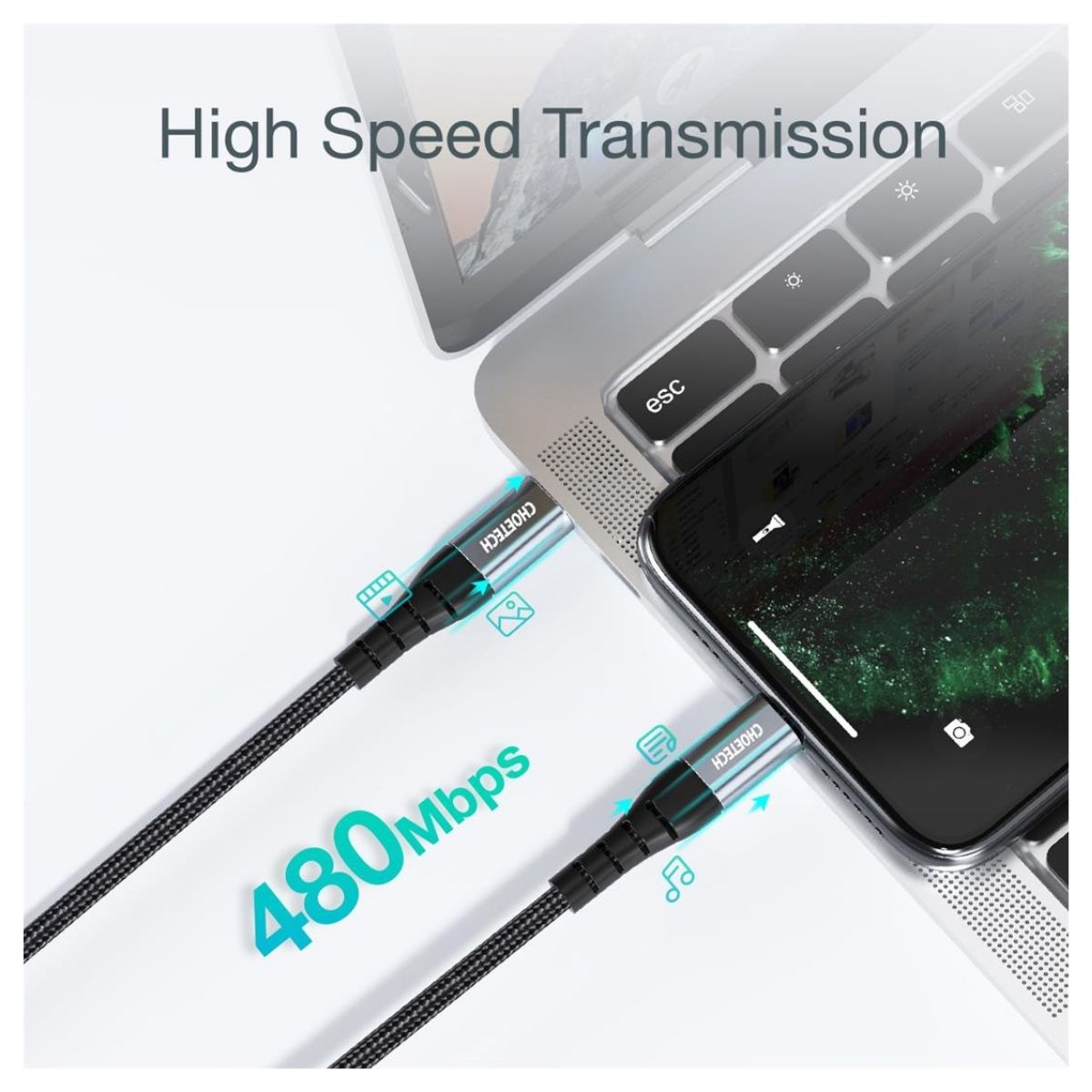 Con la certificación MFi de Apple, el cable puede cargar iPhones y iPads a toda velocidad, también proporcionar transmisión de datos con hasta 480Mbps, un cable perfecto tanto para la carga como para la transmisión de datos.