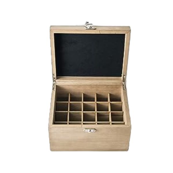 - Caja de madera para almacenar aceites esenciales de forma segura.