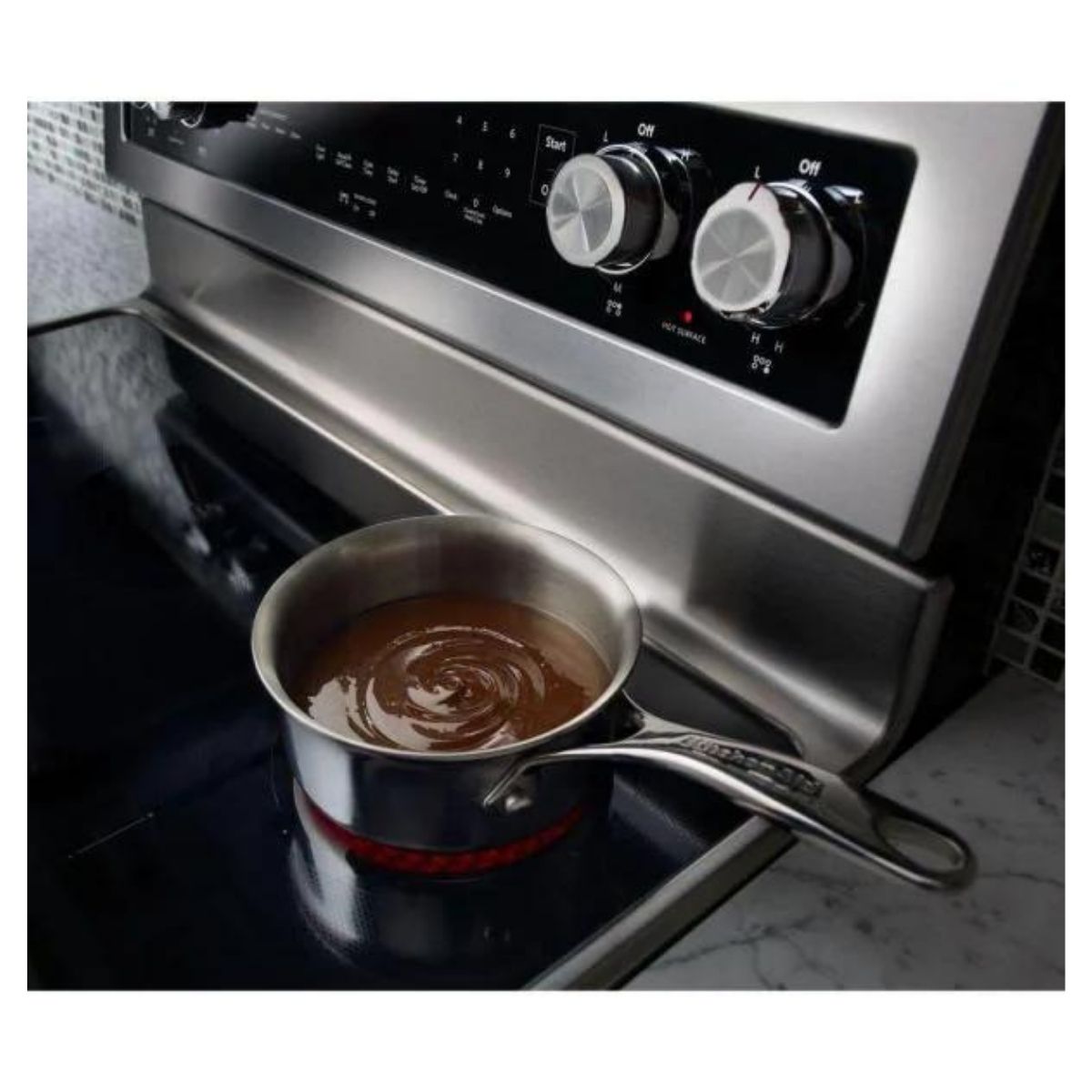 Esta hermosa cocina eléctrica independiente produce resultados de cocción impecables con Even-Heat y True Convection. El exclusivo diseño de pajarita y el ventilador de convección garantizan que el interior de todo el horno se caliente y se mantenga a la temperatura perfecta. El horno mide 6.4 pies cúbicos, lo que proporciona una capacidad extra grande que le permite preparar fácilmente varios platos a la vez. La estufa cuenta con cinco superficies de calentamiento, incluida una zona de calentamiento dedicada, lo que le permití hacer más en su estufa.