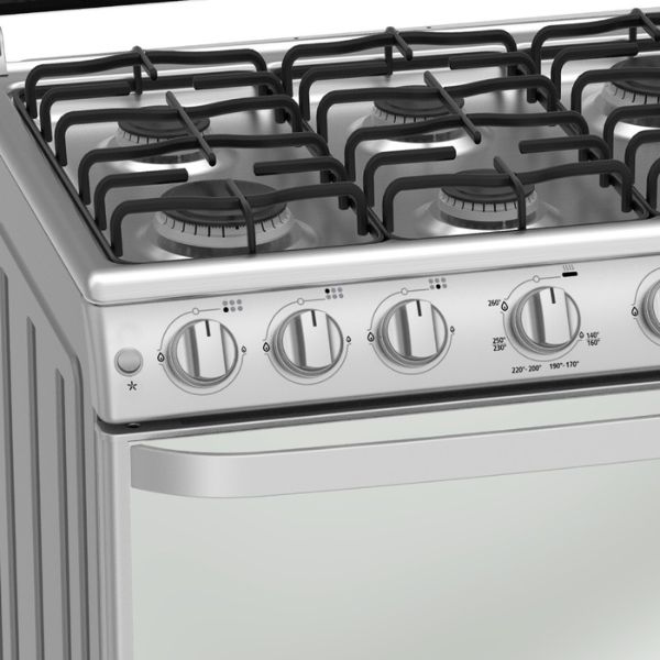 - 6 quemadores, 4 estándar + 2 jumbo.