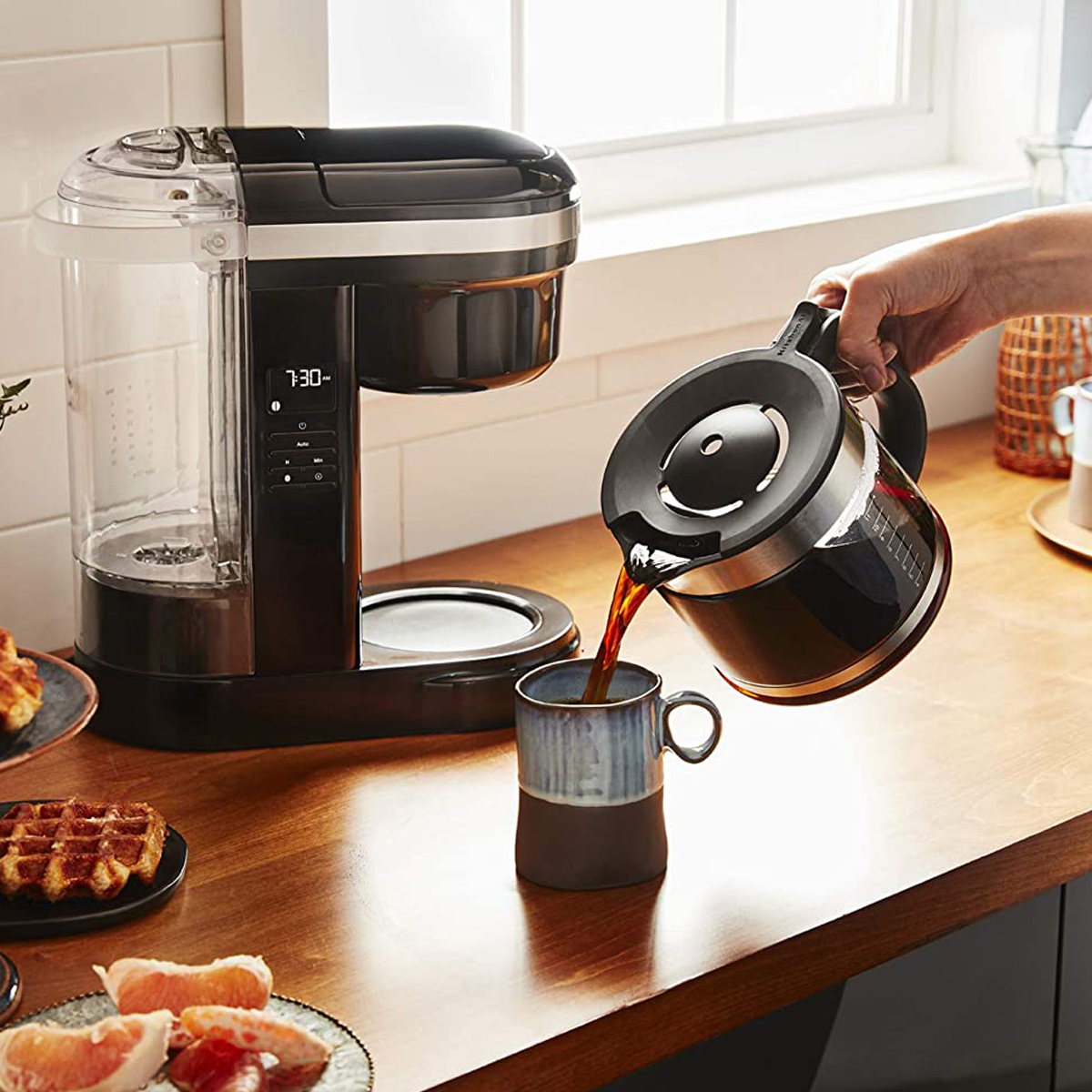 El Coffee Maker KitchenAid de 12 tazas está diseñado para preparar café con goteo que permite conseguir todo el sabor gracias su tecnología de extracción optimizada basada en un espiral de 29 orificios por los que pasa el café durante todo el proceso, podés programarla para tener café siempre, cuenta con función de pausa que permite detener el proceso si querés servir una taza.