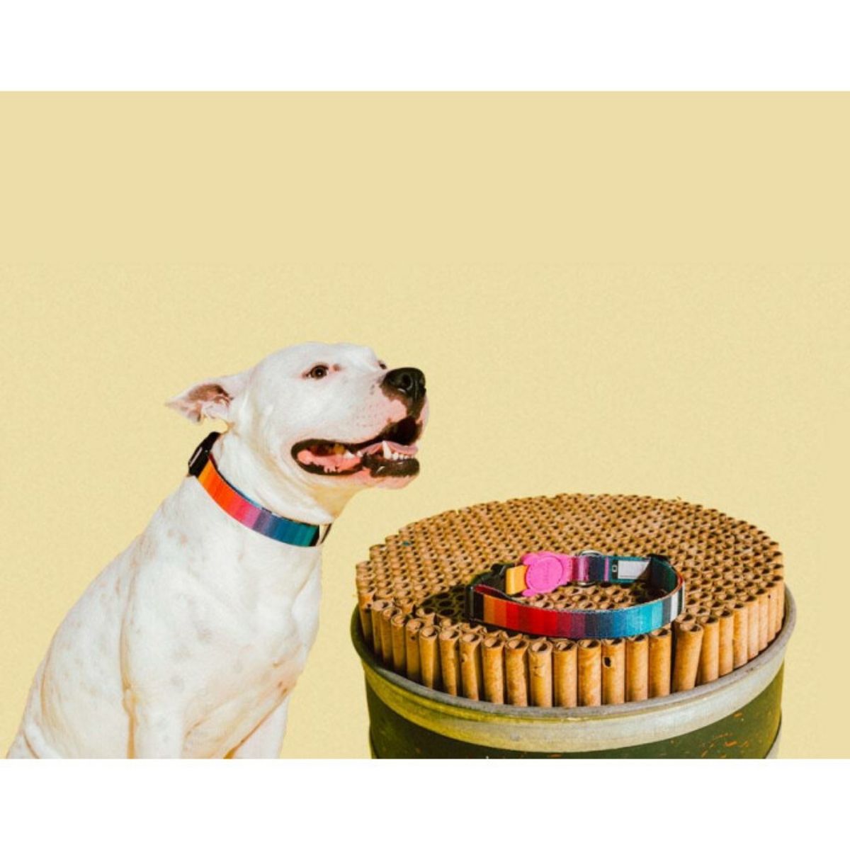 Hecho de poliéster teterón suave y resistente. Con hebilla construida con un sistema de bloqueo de 4 puntos para mayor seguridad. Totalmente ajustable, anillo en D resistente para correa y etiqueta de identificación y una calavera de goma que protege las puntadas para una mayor durabilidad.