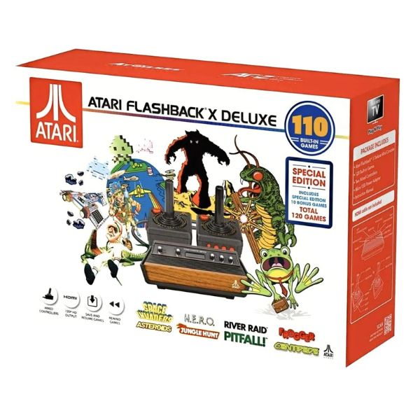 - 120 juegos incorporados que incluyen 10 juegos de bonificación. Estos juegos incluyen éxitos como Adventure, Asteroids, Centipede, Chopper Command, Frogger, Missile Command, Pitfall!, Space Invaders, Yars’ Revenge, y mucho más!.