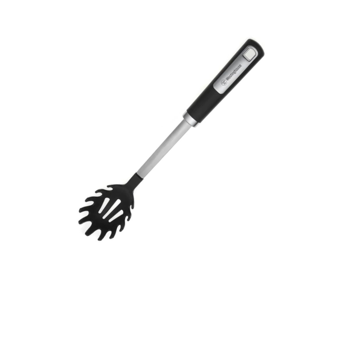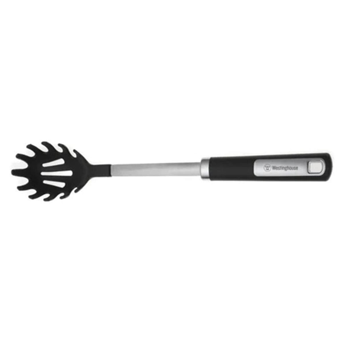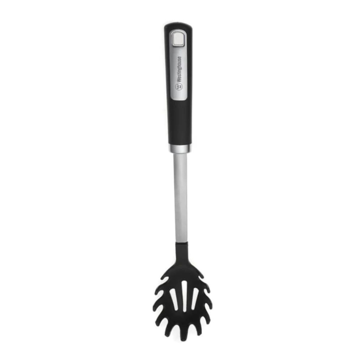 Cuchara para espagueti Westinghouse con brazo de acero, hecha de nylon y mango suave antideslizante. Soporta temperaturas de hasta 410°F (210°C), es resistente y duradera. Ideal para preparar pasta para toda tu familia.