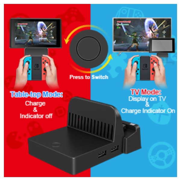 Este dock portátil es compatible con el Nintendo Switch Mini y proporciona una conexión estable y segura. Además, cuenta con puertos adicionales que te permiten conectar tus accesorios favoritos, como controladores adicionales o auriculares, para una experiencia de juego aún más completa.