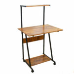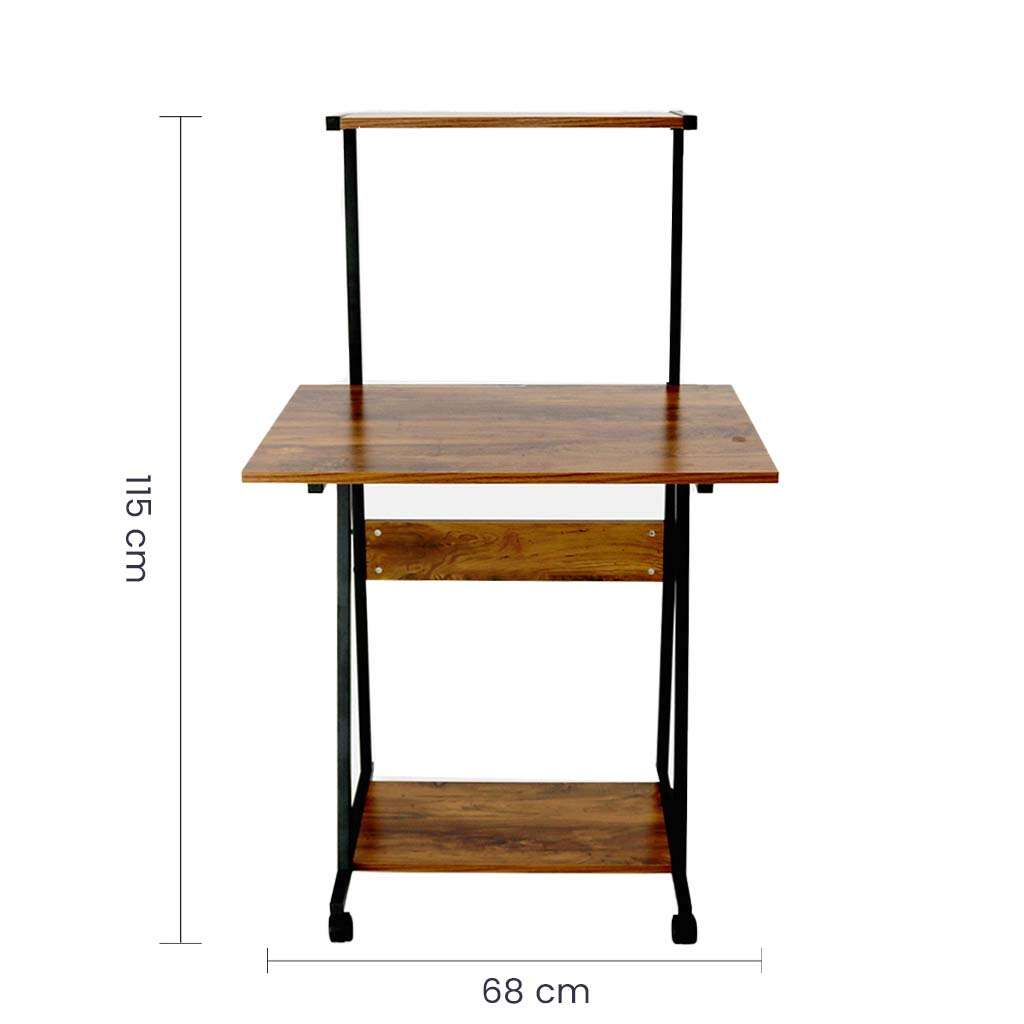 Este escritorio con rodines cuenta con la comodidad que deseas, ya que posee una movilidad espectacular gracias a sus rodines plásticos, un estante aereo y armazón metálica para mayor resistencia, además podes combinarlo con tu habitación por su color madera rústica. El material de la parte superior es de madera aglomerada laminada en melamina color madera rústica por lo que te dará una fortaleza extra y medidas perfectas para tu comodidad.