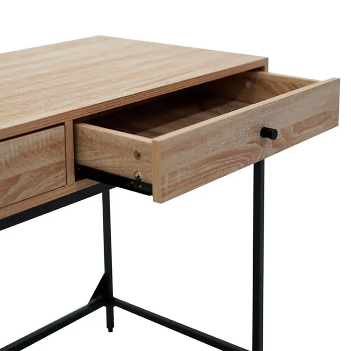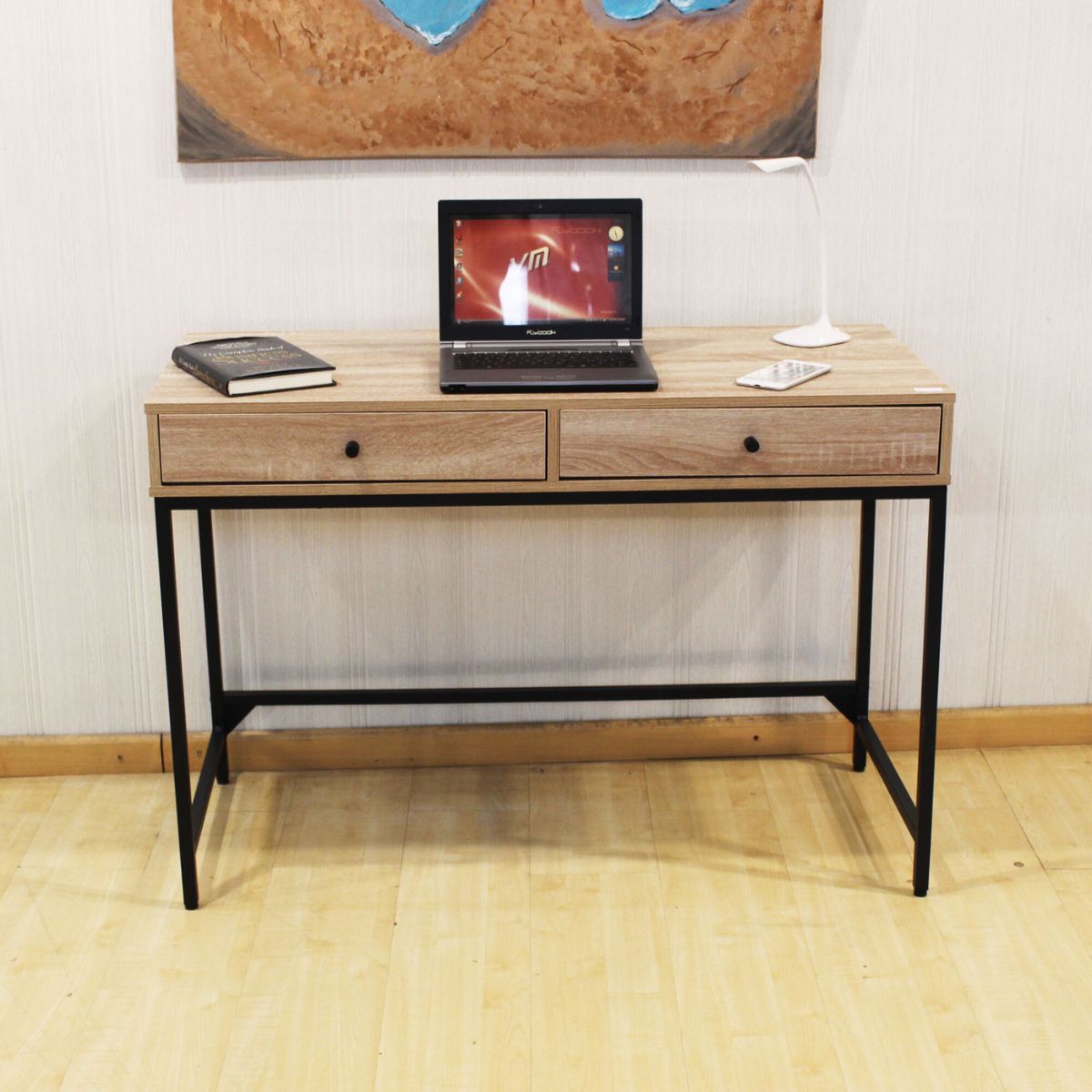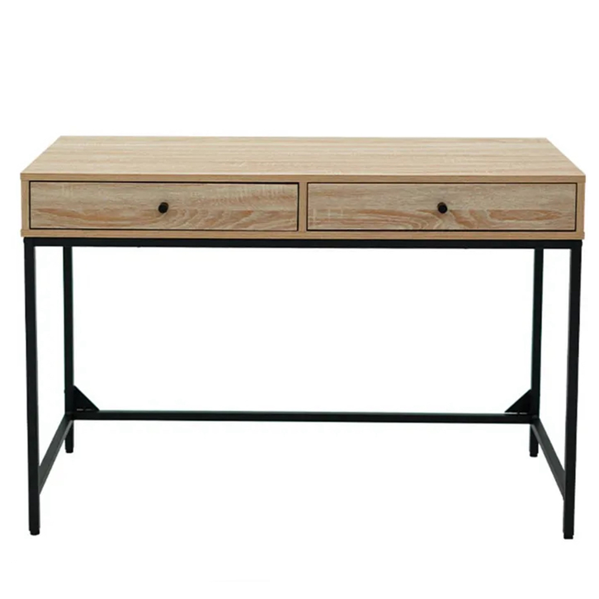 Es un hermoso escritorio elaborado en madera aglomerada con lamina de PVC, bases de metal y dos practicas gavetas que te ayudarán a organizar tus instrumentos de trabajo.