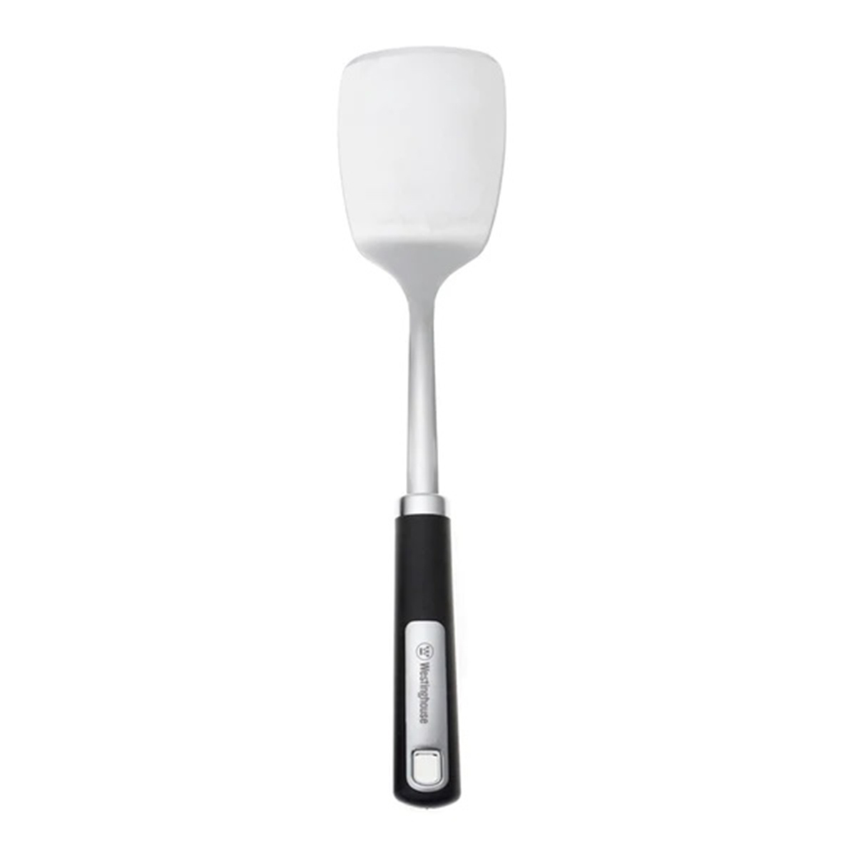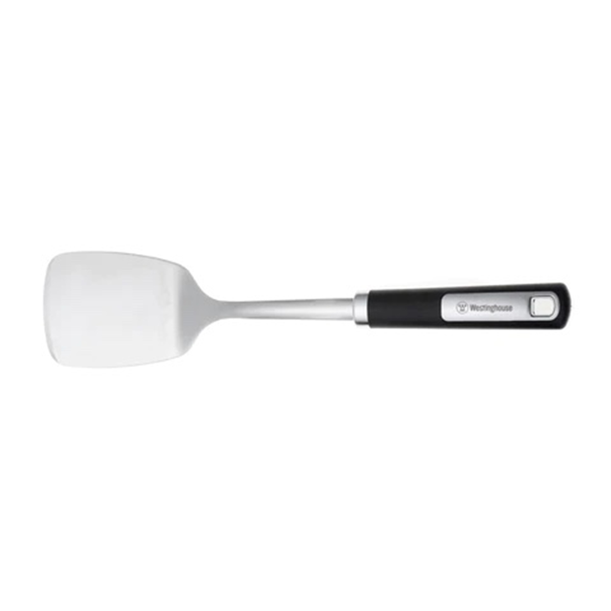 Con mango ergonómico suave y cómodo, mientras que proporciona un agarre excepcional y mantiene tus manos lejos del calor. Esta espátula está hecha de acero inoxidable, fácil de sostener y soporta el uso exigente de cocineros caseros y chefs.