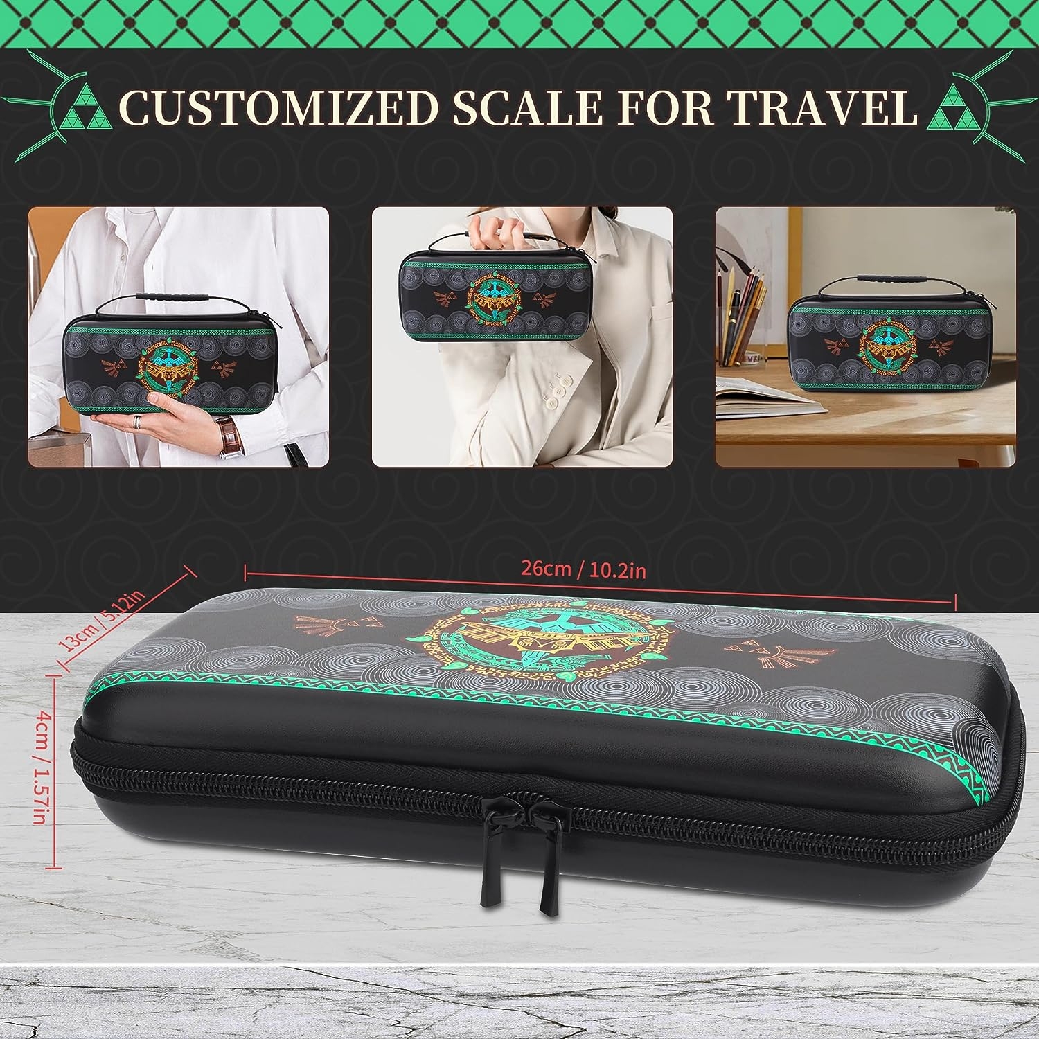 En resumen, este estuche es perfecto para los amantes del juego Tears of The Kingdom y es compatible exclusivamente con el interruptor OLED. Es impermeable, resistente a la presión, ligero y fácil de llevar, ideal para tus aventuras de juego. Puedes llevar hasta 10 tarjetas de juego contigo, y su diseño de incisión precisa permite un acceso rápido a tus accesorios. Además, su cinturón portátil y diseño liviano lo hacen fácil de llevar en tus viajes, a la escuela o en tus salidas. En resumen, el Estuche HYPERCASE Deluxe System Tears of The Kingdom es una opción excelente para proteger y llevar tu Nintendo Switch de manera segura y elegante.