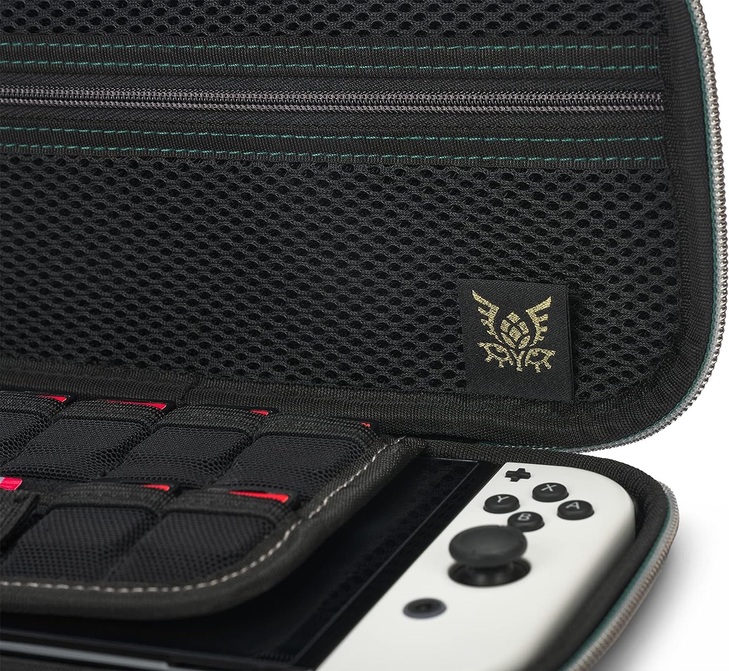 El interior del estuche está cuidadosamente diseñado con un forro de fieltro que protege la pantalla de tu Nintendo Switch de arañazos y daños. Además, cuenta con un práctico almacenamiento de malla con cremallera que se adapta a cualquier sistema, lo que significa que puedes llevar tus accesorios de juego adicionales sin preocuparte por el espacio.