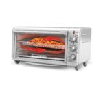 Tres perillas de control, hacen fácil ajustar el reloj automático de la función de tostar y el reloj automático de 60 minutos, y seleccionar entre cinco funciones de cocción: hornear, asar, tostar, mantener caliente y freír con aire. La tecnología de cocción por convección, circula el aire dentro del horno para resultados rápidos y uniformes al freír con aire.