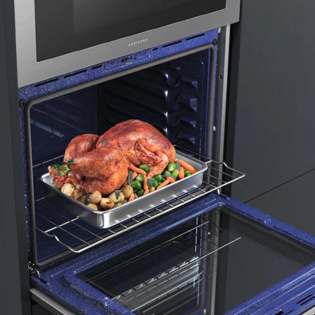 El Horno Samsung NV51T5511SG Eléctrico 30″ cuenta con un diseño espacioso donde podrás experimentar y preparar una variedad de recetas con facilidad. Además, su acabado negro elegante agrega un toque de estilo a tu cocina, haciéndola lucir aún más sofisticada. Asimismo, este horno tiene una gran capacidad para que puedas preparar un asado, varias cacerolas o dos rejillas completas de galletas. Por si fuera poco, su interior esmaltado de cerámica azul te ofrece una apariencia y una sensación de primera calidad. Y como si fuera poco, su moderna pantalla completamente táctil brinda un diseño integrado y de primera calidad que es fácil de limpiar.