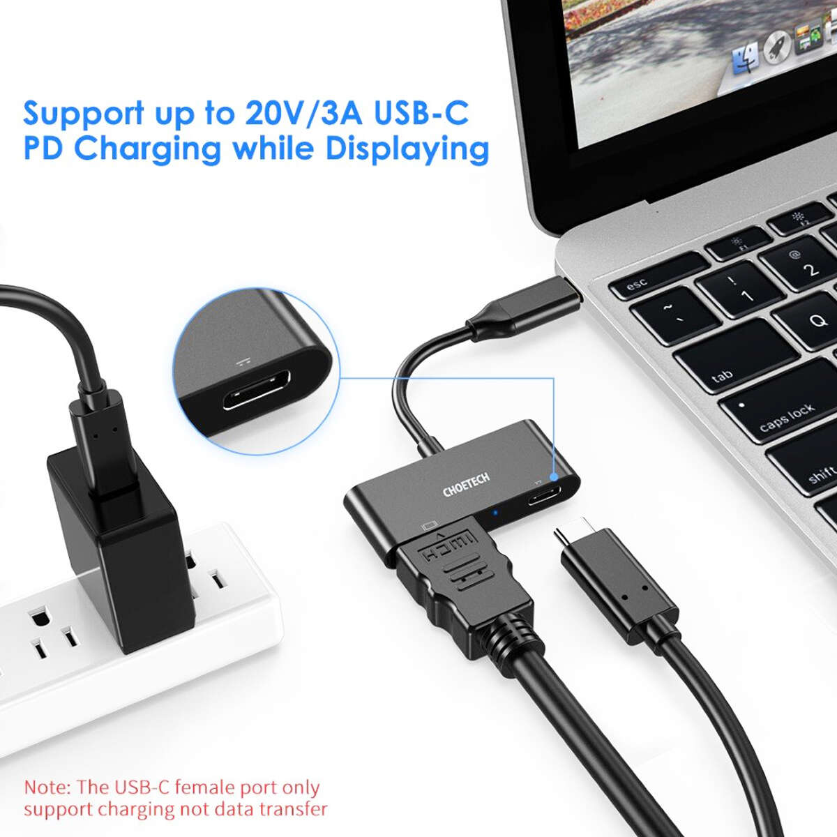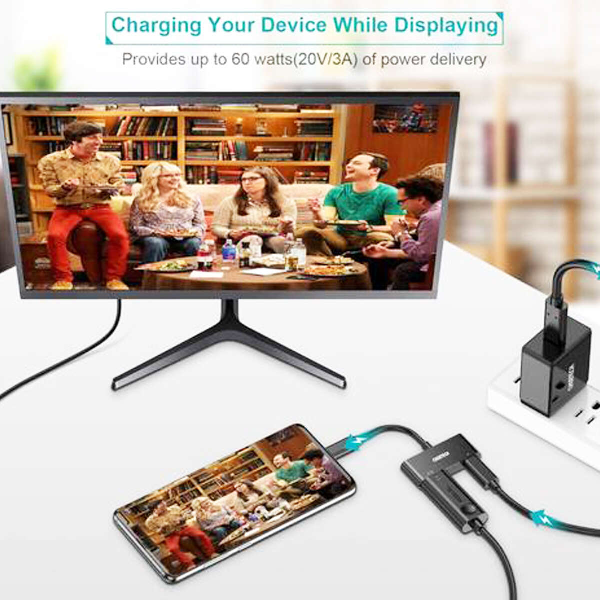 Puede cargarse mientras se está utilizando e incluso permite la conexión de una pantalla o televisor y un teléfono celular al mismo tiempo. Si necesitás conectar tu laptop a un televisor para una presentación o entretener a los niños en casa, este accesorio es lo que buscás.