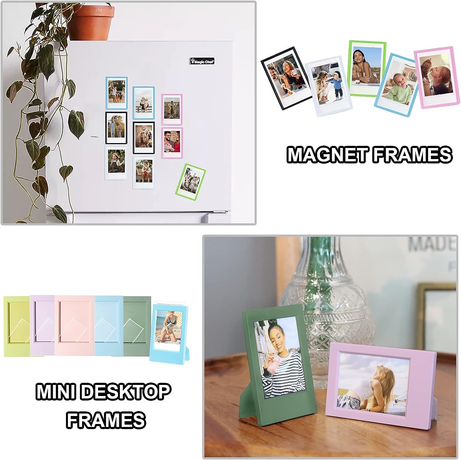 - Incluye: estuche transparente para mini 12, 1 correa de hombro ajustable transparente, 1 álbum de fotos Instax mini, 5 mini marcos de colores, 5 calcomanías de cámara de bricolaje, 20 calcomanías de borde divertidas, 5 marcos magnéticos para refrigerador.
