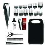 - Kit de corte de cabello de 22 piezas: cortadora, protector de cuchilla, peine de barbero, peine para peinar, tijeras, cepillo de limpieza, aceite para cuchillas, estuche de almacenamiento con asa, 12 peines guía e instrucciones/guía de peinado en inglés y español.