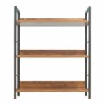 La estructura de metal negro no solo aporta estabilidad, sino que también agrega un toque industrial sofisticado al diseño. Con tres estantes espaciosos, este librero ofrece suficiente espacio para exhibir tus libros favoritos, objetos decorativos y recuerdos personales de manera organizada. Sus dimensiones, que abarcan 70 cm de largo, 30 cm de ancho y 85 cm de alto, lo hacen adaptable a diversas áreas, incluso en lugares con limitaciones de espacio, como habitaciones, oficinas o salas de estar compactas.