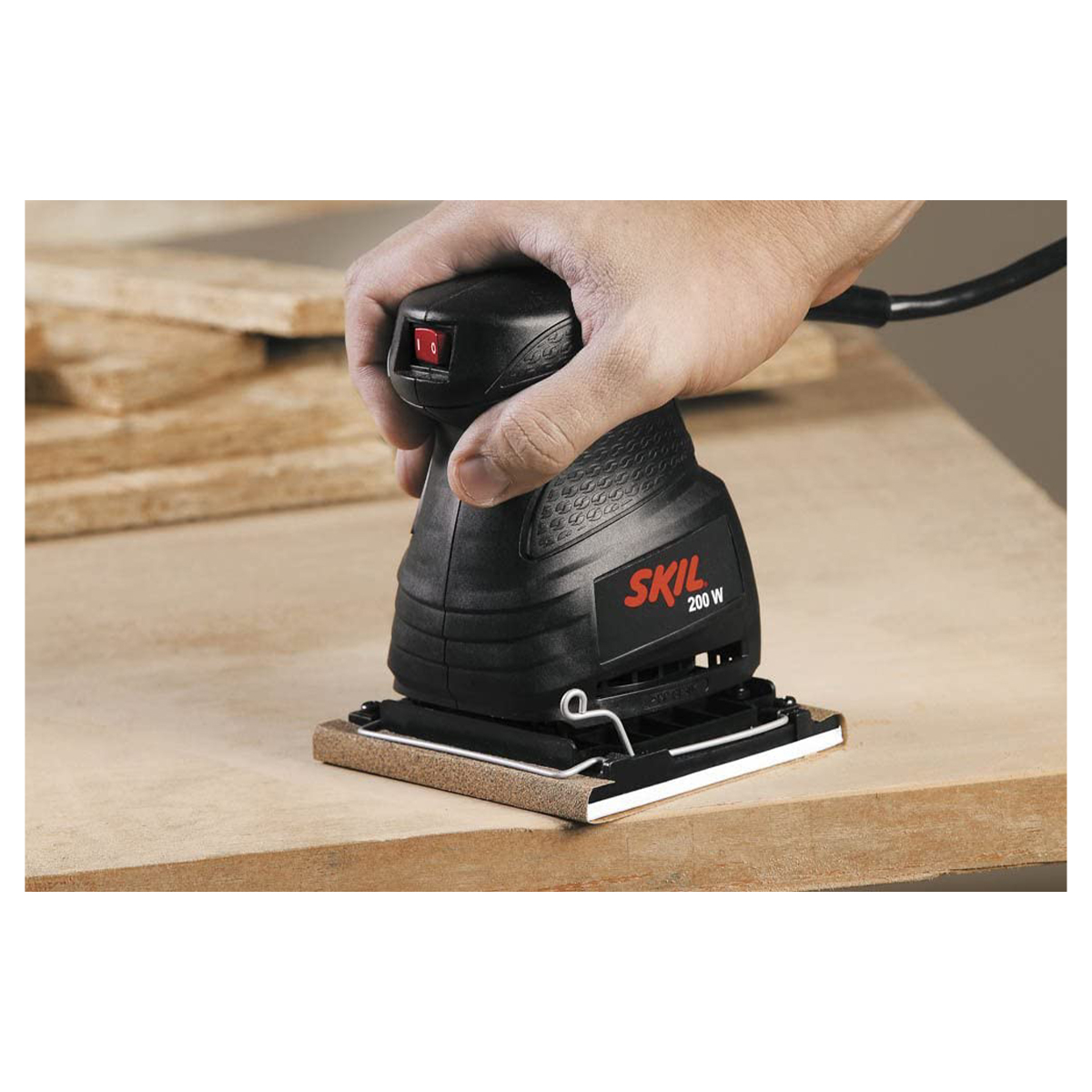 Su sistema de interruptor sellado contra el polvo previene daños en el motor. Posee un sistema de grapas para la fijación de la lijadora en cualquier superficie, su diseño es compacto, ergonómico y te dará el control perfecto de funcionamiento con una mano.