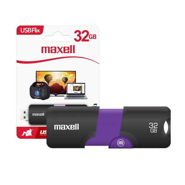 La Memoria Maxell USB Flix portátil para uso diario, ideal para almacenar tus fotos, música, videos, presentaciones, transferencia de archivos y almacenamiento general, la Memoria Maxell USB Flix es compatible con reproductores de música, computadoras, portátiles, automóviles y más.