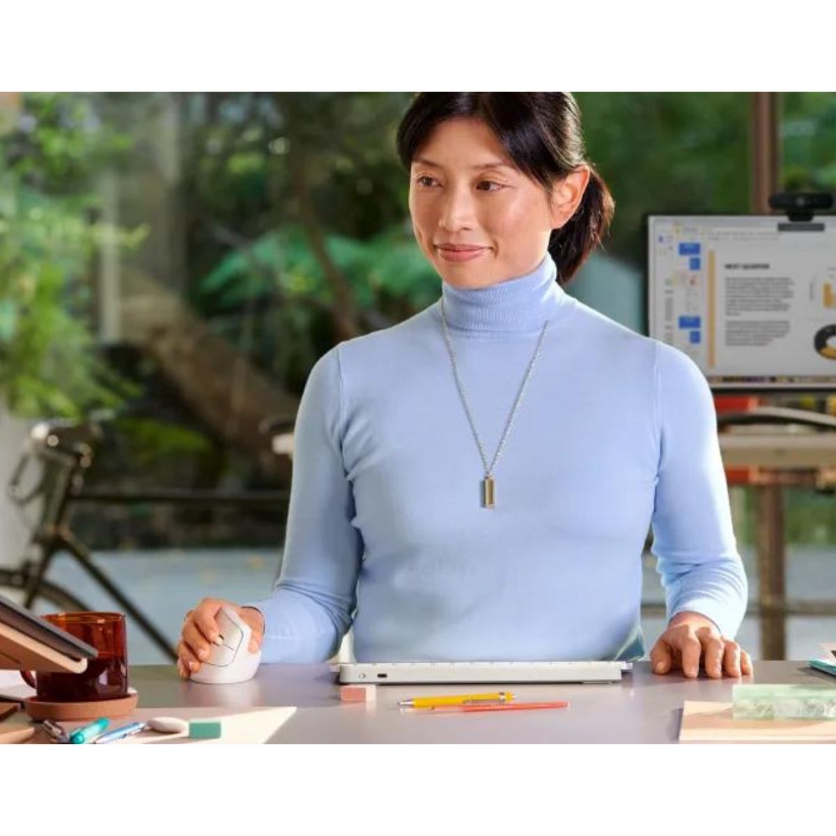 La conexión inalámbrica del Mouse Logitech Lift Vertical significa que no hay enredos de cables y que puedes moverte con facilidad. Además, su batería doble A dura hasta 24 meses, lo que significa que puedes usarlo sin preocupaciones de quedarte sin energía