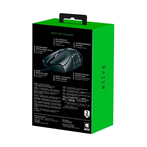 Equipado con un sensor óptico de alta resolución, el Razer Naga X USB garantiza una precisión excepcional en cada movimiento. Por otro lado, su diseño ergonómico permite un agarre cómodo y natural, lo que resulta en una comodidad duradera durante las largas sesiones de juego. Además, los botones programables en el lateral del mouse proporcionan una ventaja adicional al permitir la asignación de comandos personalizados para una jugabilidad más eficiente.