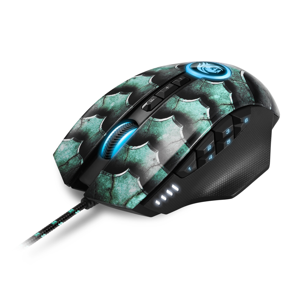 Para una precisión específica, el Drakonia II está equipado con un sensor óptico PixArt 3360 de alto rendimiento con 15.000 ppp. Se pueden seleccionar seis niveles de DPI personalizables. El indicador DPI, iluminado en blanco, muestra qué nivel se estás utilizando actualmente.