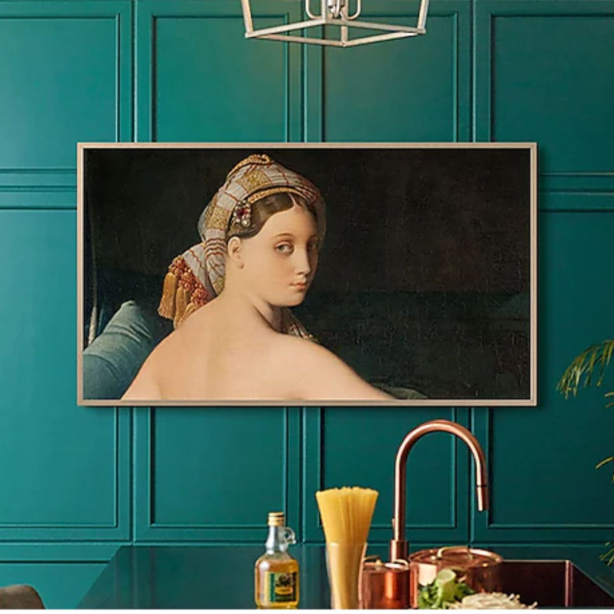The Frame es un televisor con un marco elegante y moderno que combina a la perfección con tu decoración. No solo mejora tu espacio por ser un televisor, sino que se convierte en parte de tu galería personal como si fuera una obra de arte.