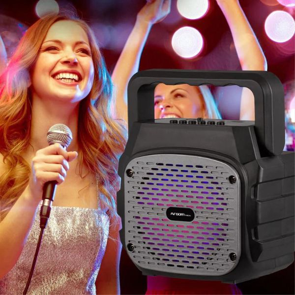 Para establecer el ambiente de la fiesta, el Parlante ArgomTech Rumba Box viene con efectos de iluminación integrados que se pueden encender o apagar. Además, incluye un micrófono para que puedas divertirte con el karaoke y disfrutar aún más de la fiesta.