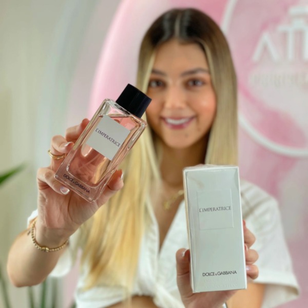 La pureza y sencillez del frasco del Perfume Dolce & Gabbana L’Imperatrice, transparente realzan la delicada tonalidad blush de la fragancia, evocando la poderosa silueta refinada y rectilínea, coronada por un tapón negro minimalista, con una base de vidrio lineal, pero al mismo tiempo importante. El Perfume Dolce & Gabbana L’Imperatrice está envuelto en una caja blanca, sobria, embellecida con el monograma DG, emblema de elegancia y modernidad.