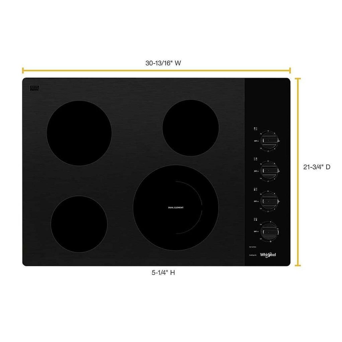 Está equipada con FlexHeat, 2 elementos en 1 con un anillo interior de 6″ ideal para sartenes y un anillo exterior expandible de 9″ que deja espacio para utensilios de cocina más grandes.
