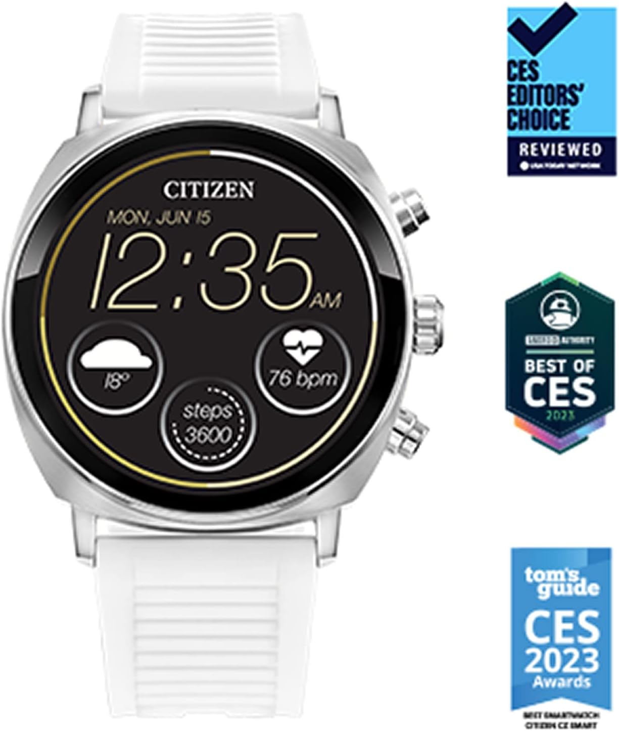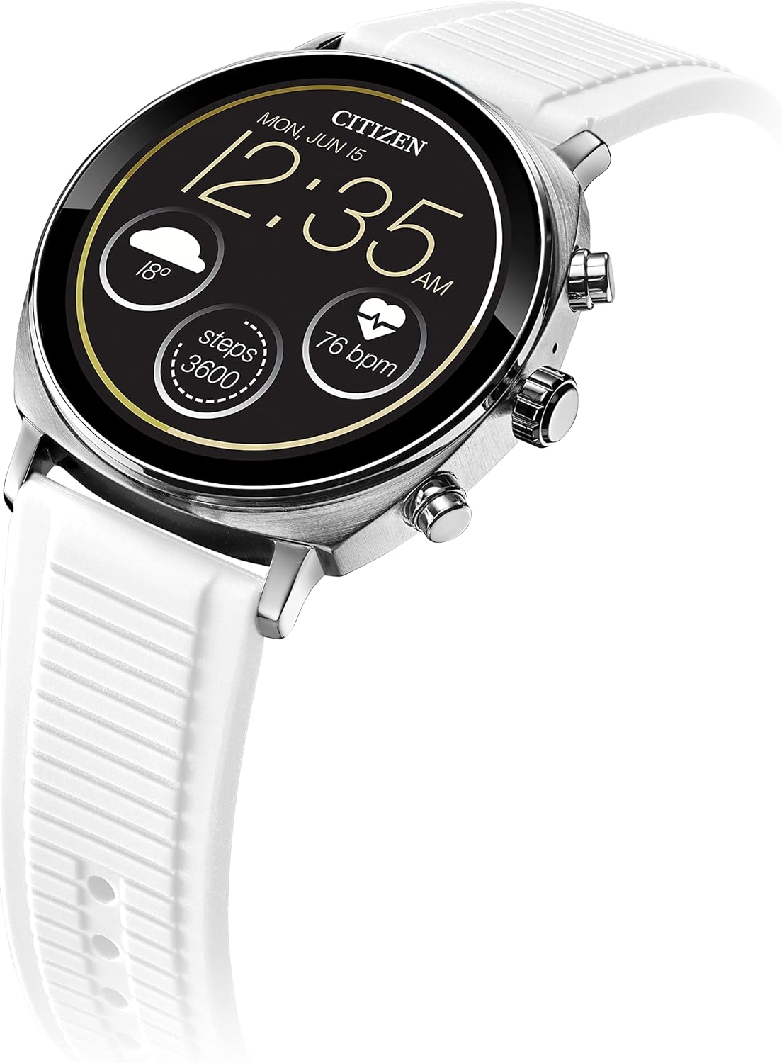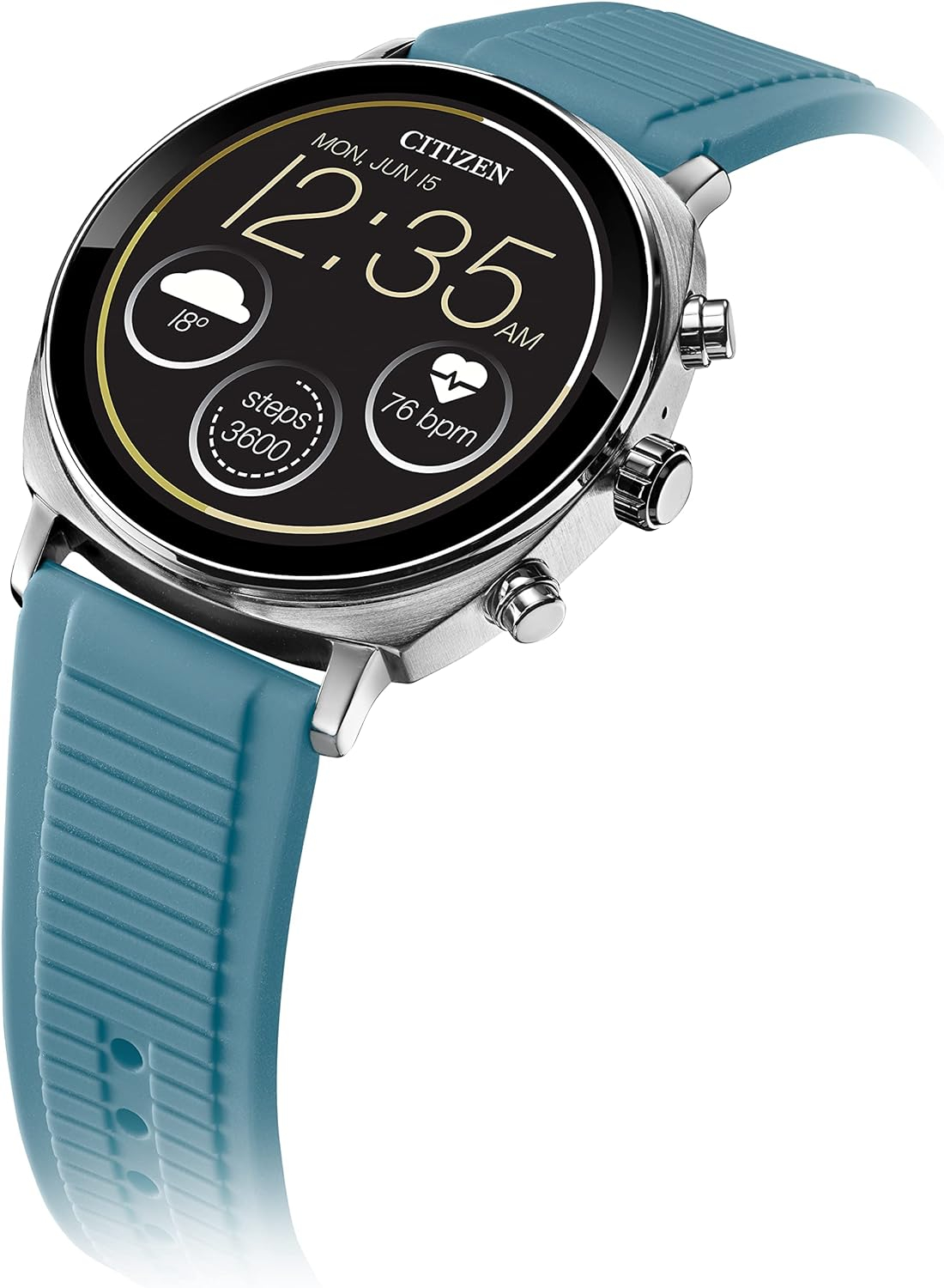 El Citizen CZ Smart PQ2 41mm, equipado con una cómoda correa de silicona, destaca como una opción elegante y funcional para quienes buscan un reloj inteligente. En primer lugar, su diseño moderno de 41 mm asegura un ajuste perfecto para cualquier ocasión, ya sea casual o formal. Además, la correa de silicona no solo proporciona comodidad durante todo el día, sino que también garantiza durabilidad y resistencia al desgaste.