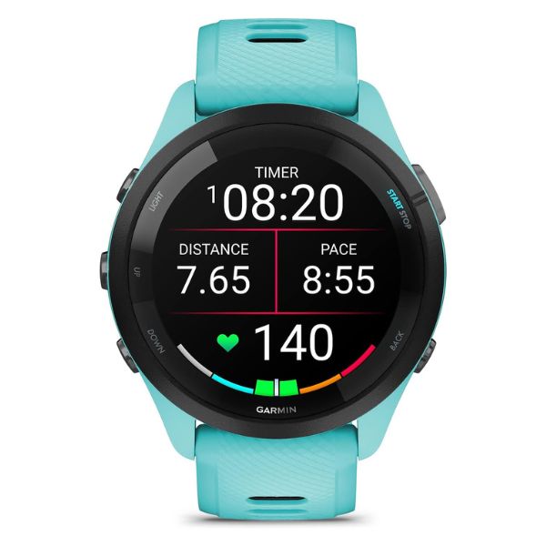 En primer lugar, destaca su diseño compacto y ergonómico, que lo hace cómodo de llevar durante todo el día. El Forerunner 265 cuenta con una pantalla de alta resolución que muestra claramente la información relevante, como la frecuencia cardíaca, distancia recorrida y el tiempo transcurrido en cualquier actividad física.