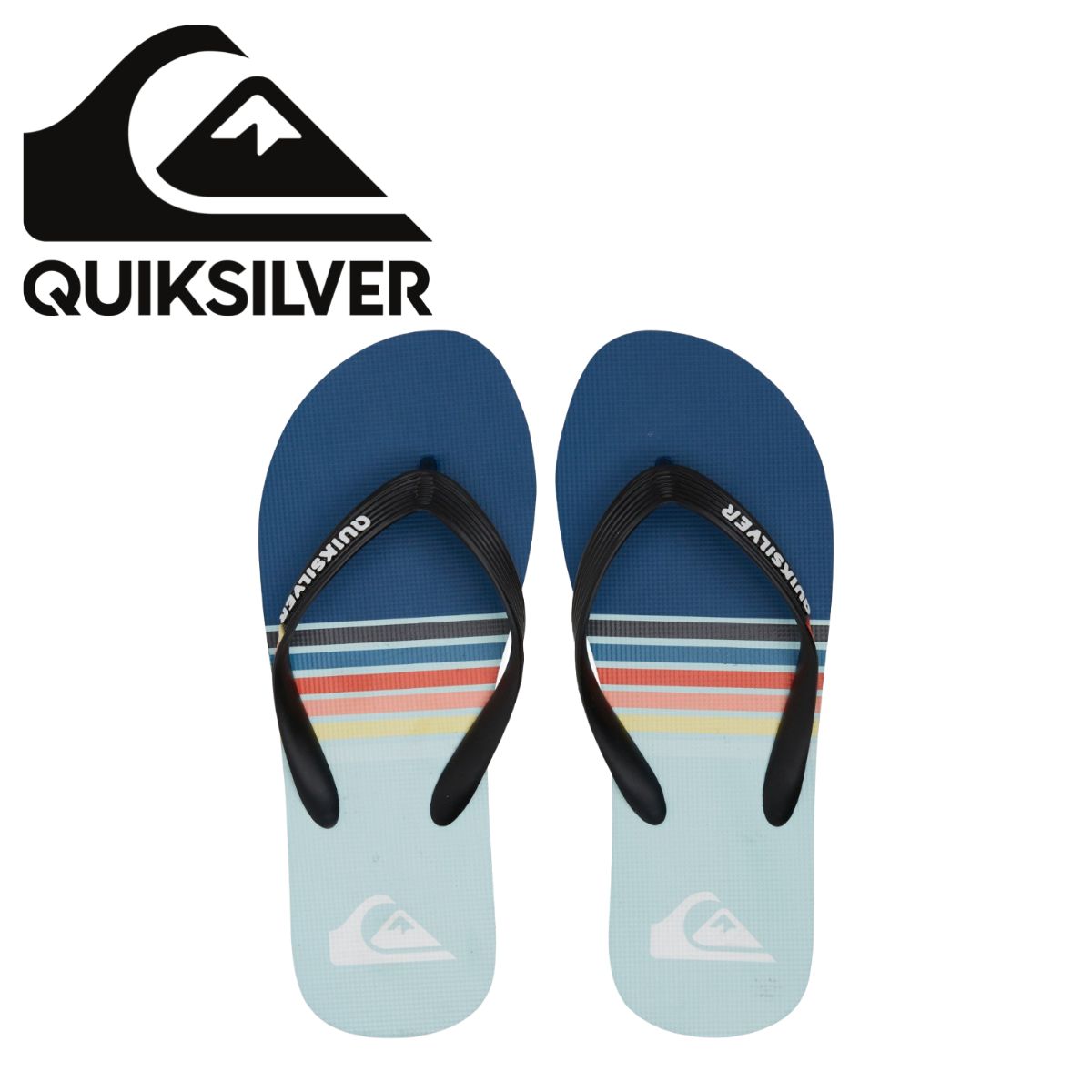 - Parte superior: correa flexible de caucho sintético de 3 puntos con la marca denominativa Quiksilver y el logotipo de Mountain Wave de moldeado fino.