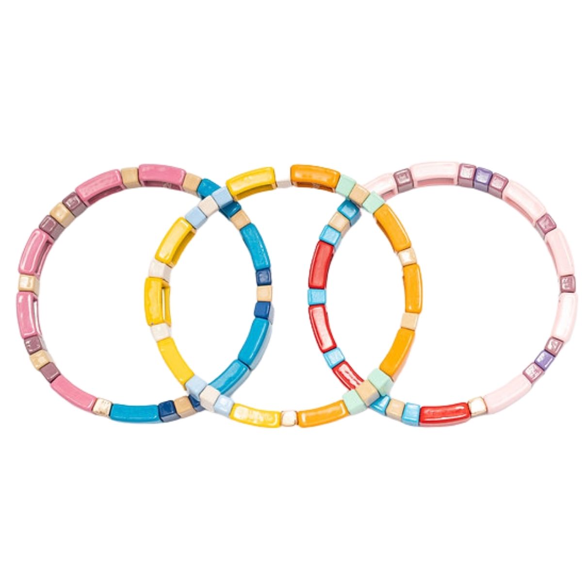 Diferentes formas de usar, los brazaletes de bloque de colores son adecuados para usar por separado y también puedes combinarlos para hacer pulseras apilables o combinarlos con otras joyas coloridas, agregando más diversión y amuletos, haciendo tu look más atractivo.
