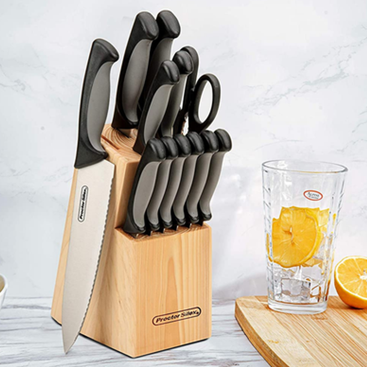Este juego de cuchillos, posee mangos suaves de dos tonos diseñados por expertos, para dar la mejor experiencia de cocina. Incluye once cuchillos de tipo profesional y tijeras para uso en la cocina.