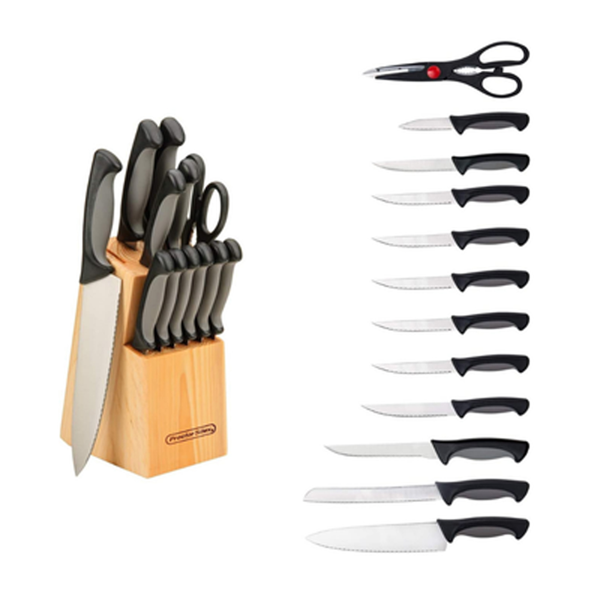 Este juego de cuchillos, posee mangos suaves de dos tonos diseñados por expertos, para dar la mejor experiencia de cocina. Incluye once cuchillos de tipo profesional y tijeras para uso en la cocina.
