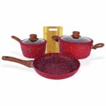 - Incluye: 1 olla con tapa de vidrio, 1 sartén, 1 cacerola con tapa y 1 tabla para picar de bambú.