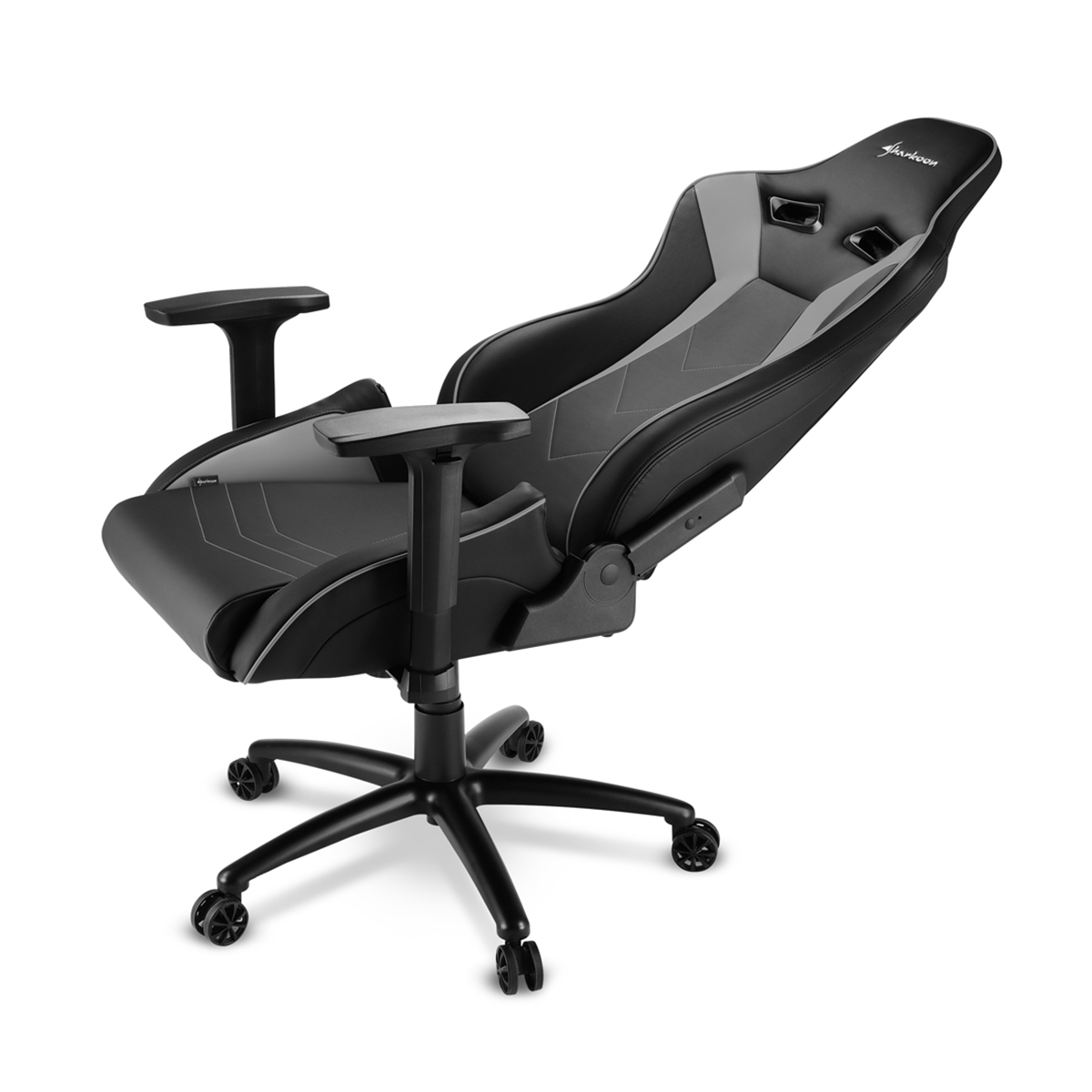 Además, con una cubierta de cuero sintético y un acolchado particularmente suave que puede adaptarse a la forma de tu cuerpo. La base del asiento tiene una forma especial para garantizar el máximo espacio para tus piernas, sin importar que tan tensa sea la partida.
