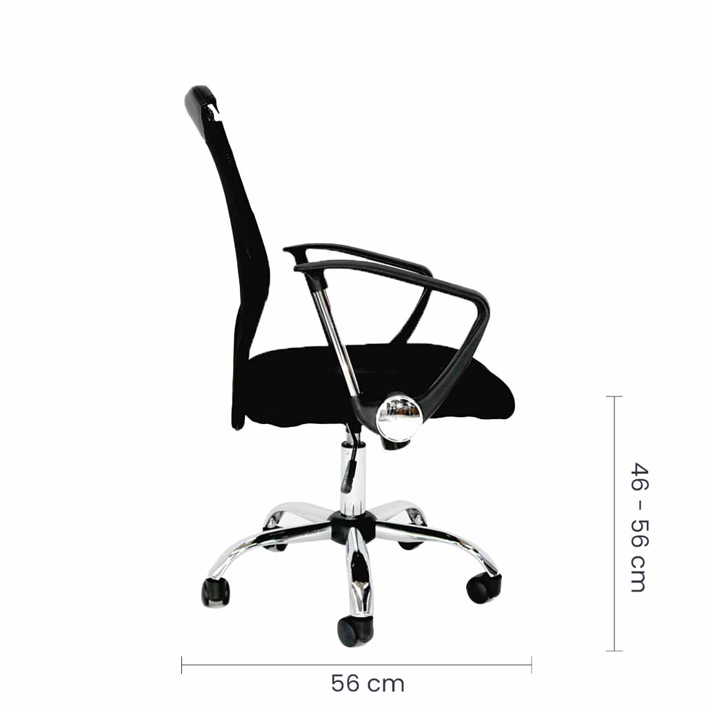 Está construido con materiales de plástico y metal, enfocado para oficinas ejecutivas. Incorpora una base metálica cromada de 5 soportes, lo cual te dará un equilibrio en cualquier posición. Su asiento es ajustable, por lo que podés adaptarlo para que realicés tus tareas diarias de la mejor forma.